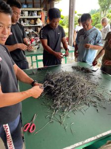 まずは収穫したラベンダーを細かくカットし袋に詰め、専用の蒸し器で浄化していきます!