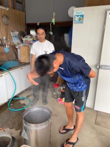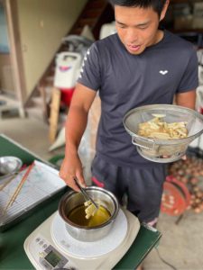 そして浄化し終わったら椿油を絞った搾り機で絞って行きます!微量ではありますが、収穫できました!!